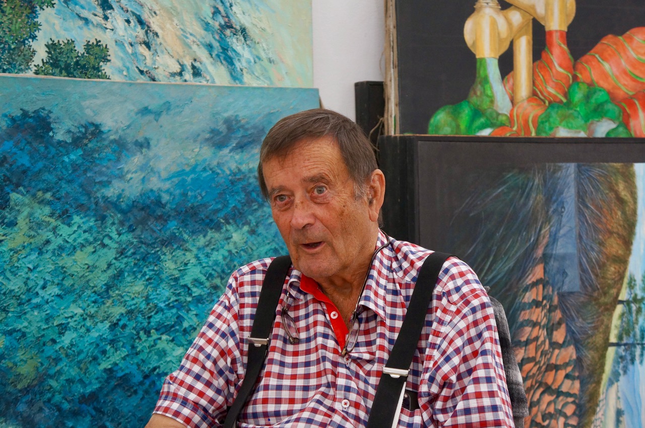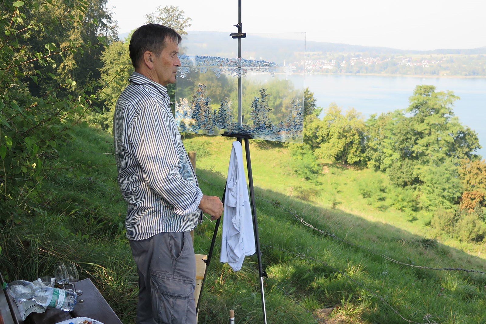 Eines seiner Markenzeichen wurde die Hinterglasmalerei. Einige dieser Werke waren zwei Meter hoch und drei Meter breit. Steht man davor, man möchte am liebsten darin versinken - und genau das passiert auch, man kann sich kaum dagegen wehren. Ein Effekt, der vom Künstler beabsichtigt war. Die Überdimension als Stilmittel sei bewusst gewählt, um eintauchen zu können in diesen getupften Farbrausch, sagte er anlässlich seiner Ausstellung im Museum Rosenegg 2020.