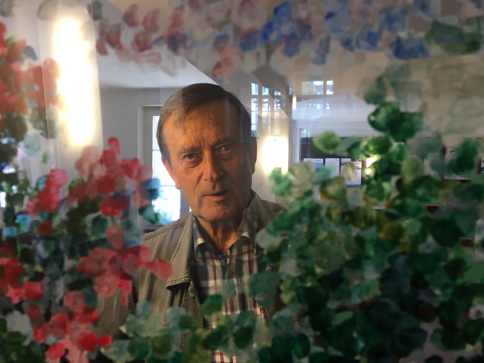 Distanz, Nähe, Garten, Natur, Idylle - all das findet sich in seinen Werken. Und wer nun denkt Gartenmalerei, das sei doch Kitsch pur, der wird hier eines Besseren belehrt. Als klassisches Gemälde auf Leinwand wirkte dieses Motiv fast einfältig. Die Scheibe schafft Distanz, sie nimmt dem Bild den Kitsch. Eine verblüffende Wirkung.
