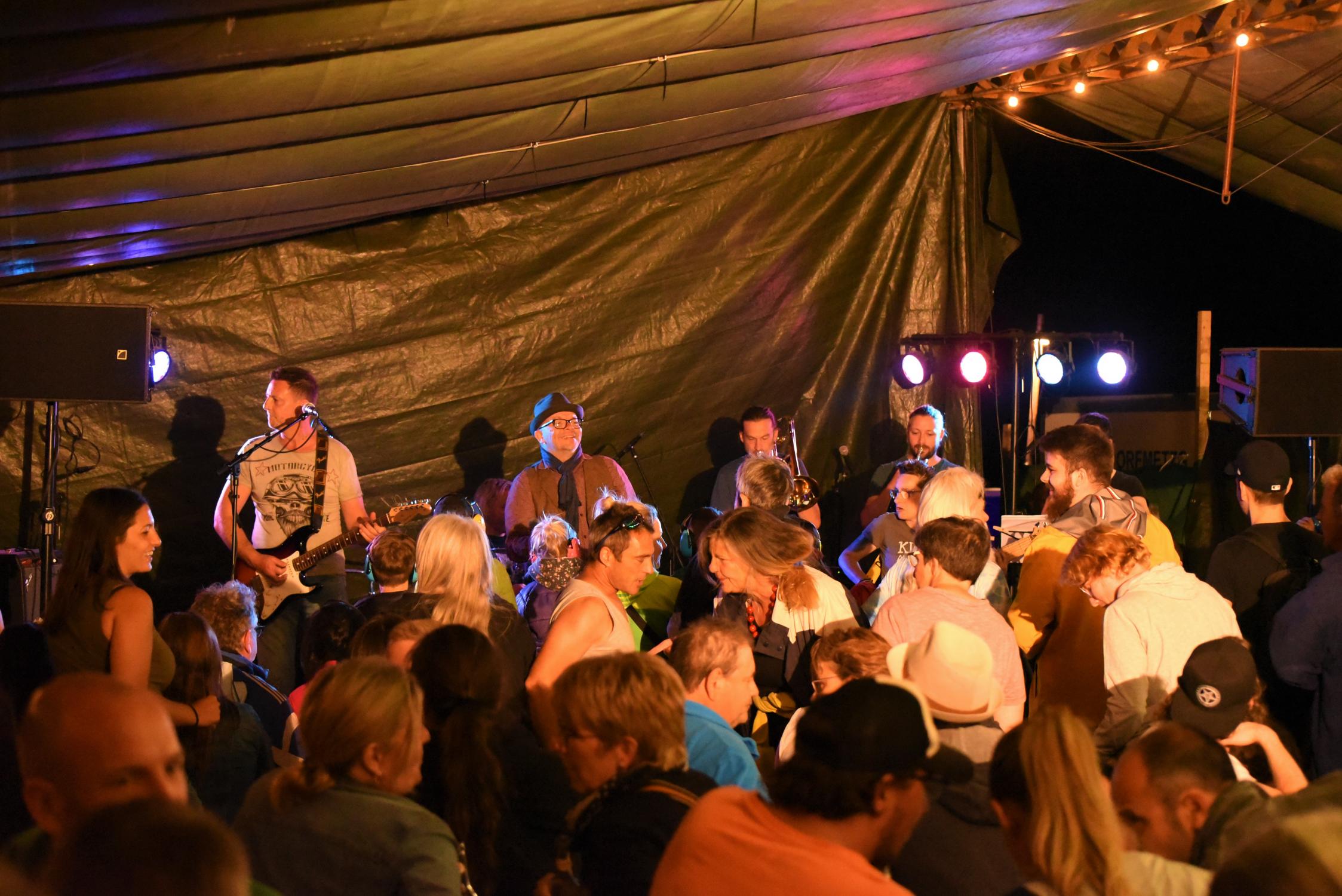 Für die musikalische Eröffnung am Freitagabend sorgten Mainstreet Factory aus Steinach, die mit mitreissendem Indie-Rock der Menge einheizte. Schnell wurden die wenigen Stehplätze vor der Nebenbühne im Zelt zu knapp und die Leute standen in den Bankreihen auf, klatschten und wurden von der Band zum Mitsingen im Chor animiert.