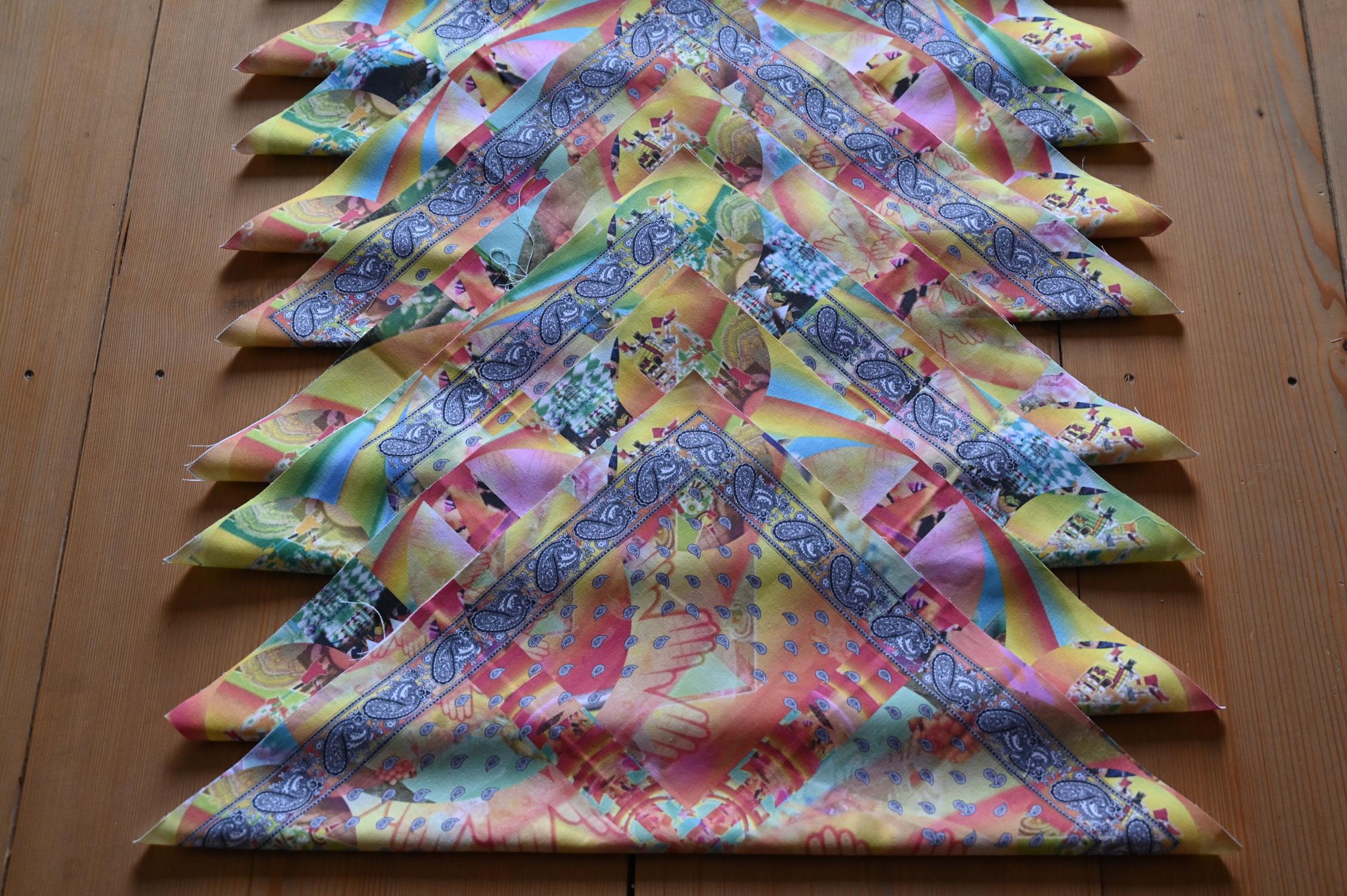 Nicht nur in ihrem Video zeigt Olga Titus nun die Aneignung und Veränderung der Muster. Auch das „Glarner Tüechli“ mit seinem umlaufenden Paisleymuster wird ihr zum aussagekräftigen Anschauungsobjekt voller Farbkraft. Wenngleich nur zurückhaltend koloriert, leuchtet eine Arbeit von ihr von einer Wand im Obergeschoss.