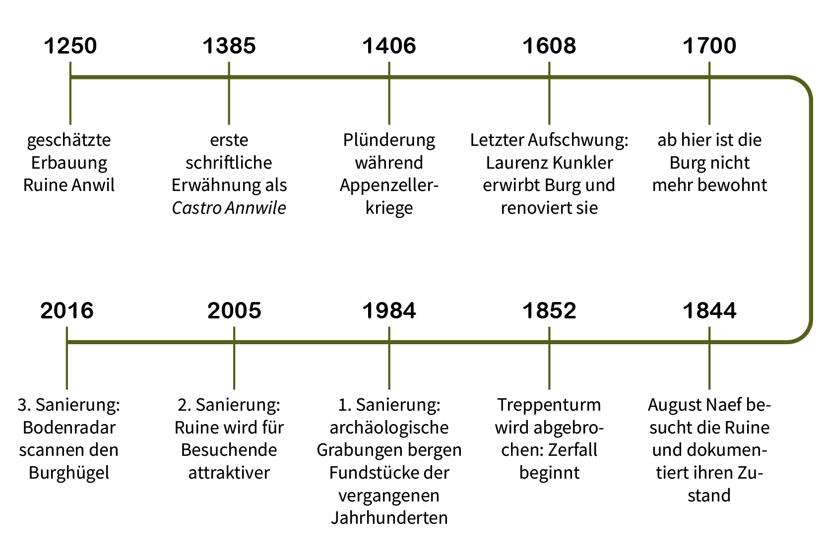 Zeitstrahl: Die wichtigsten Daten zur Geschichte der Ruine Anwil im Überblick