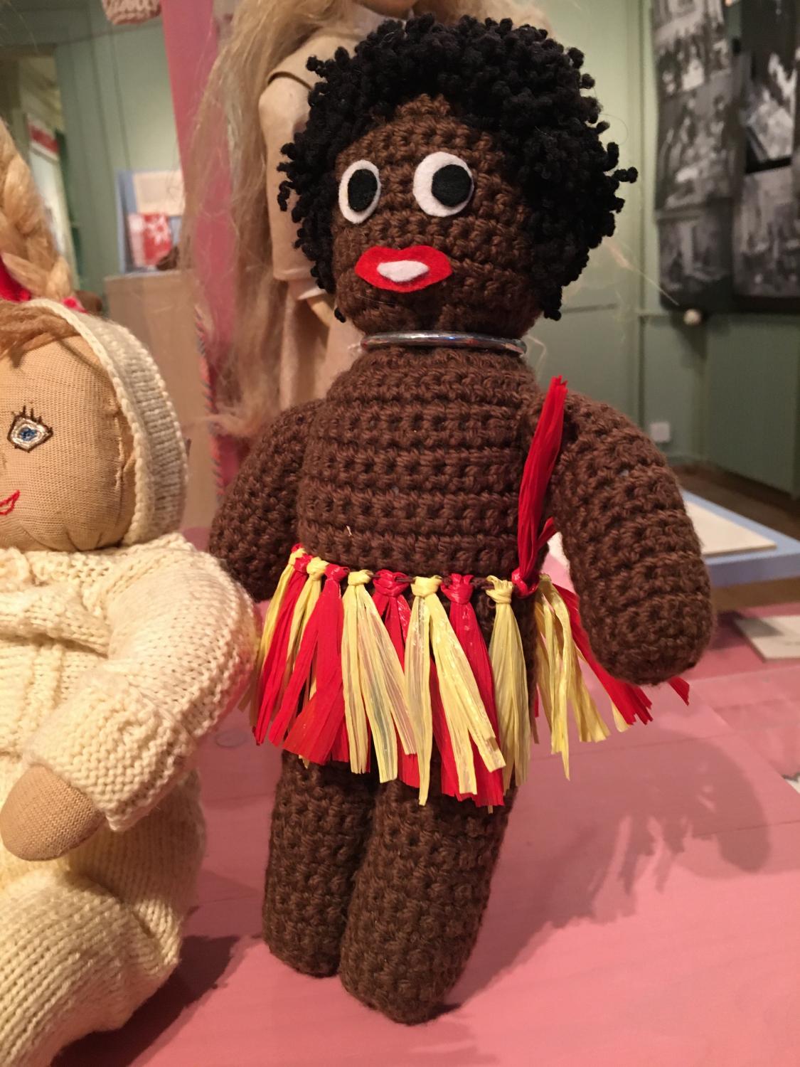 Eine Lehrerin aus dem Kanton Bern beklagte sich in dieser Mail über ein Exponat aus der aktuellen Sonderausstellung „Fleiss und Schweiss“, in der es um die Geschichte des Textil- und Handwerkunterrichtes in der Schweiz geht. Im Kern ihrer Beschwerde: Eine vielleicht 15 Zentimeter grosse Häkelpuppe. Dunkler Stoff, schwarze grosse Kulleraugen, breite Lippen, krauses Haar und um die Hüften ein gelb-rotes Baströckchen.